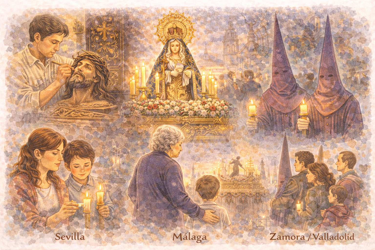 La Semana Santa en España no es solo una celebración religiosa. También es una muestra de arte, historia y patrimonio. Muchas imágenes religiosas, bordados, esculturas y adornos forman parte de una tradición artística muy antigua. Además, para muchas